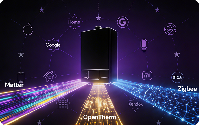 Our boilers support Matter, OpenTherm, and Russian Zigbee protocols, enabling seamless integration with global and regional smart-home ecosystems.