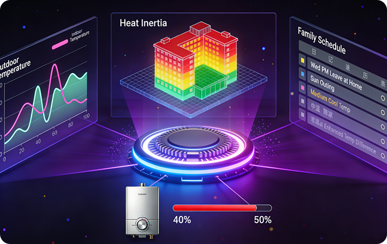 Real-time monitoring of indoor and outdoor temperatures enables accurate heating demand calculation and output adjustment.